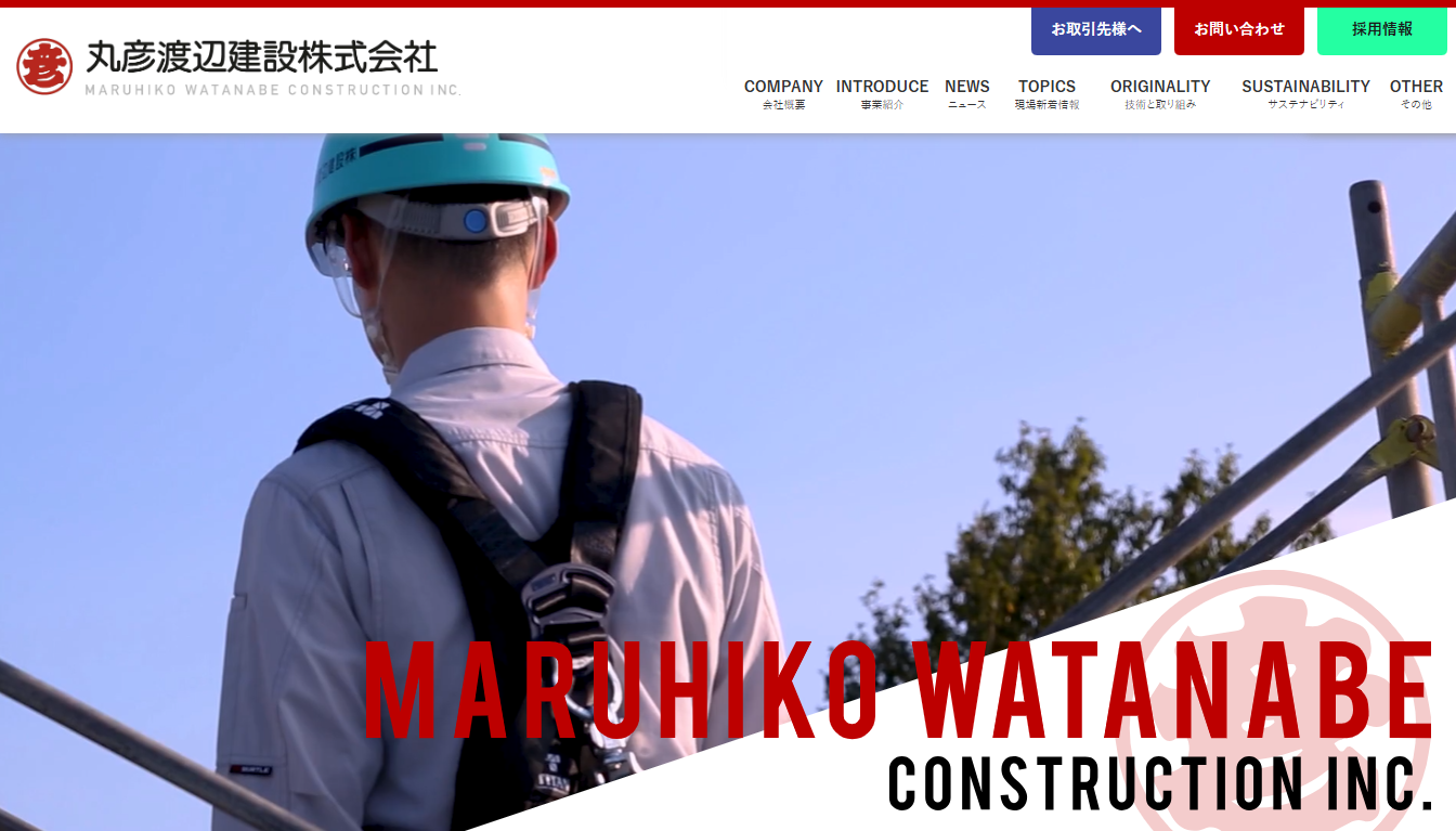 丸彦渡辺建設株式会社は、建築、土木、設計・監理、リニューアル、機械・生産サポートの各事業を通じて、人にも環境にも誠実に向き合っている企業です。100年で培った技術を磨きながら、安心・暮らし・経済を支え、さらなる進化を目指しています。