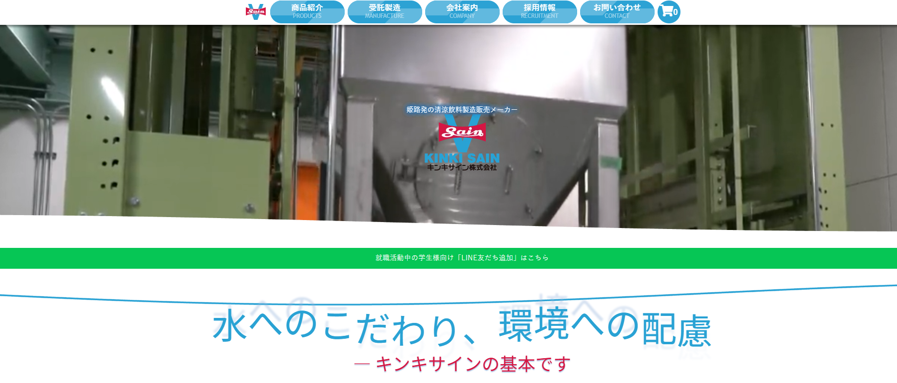 キンキサイン株式会社は、自社ブランドの清涼飲料水を開発・製造する飲料メーカーです。ご当地サイダーの姫路城サイダーや国産茶葉100%にこだわった緑茶など、多彩なジャンルの飲料を手がけています。また、緑茶・烏龍茶・麦茶をはじめとした飲料の受託製造にも取り組んでおり、最近では果汁・コーヒー・乳性飲料の製造もスタートしています。