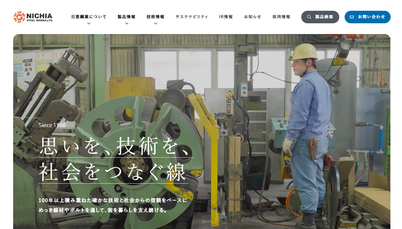 日亜鋼業株式会社は、「めっき技術で社会に貢献する」をポリシーとして、めっき線業界でトップシェアを誇る鉄鋼メーカーです。ナンバーワン・オンリーワン商品をはじめとして、付加価値の高い製品を多数製造しているほか、顧客のニーズに応えた製品の共同開発を通じたソリューション営業も展開しています。