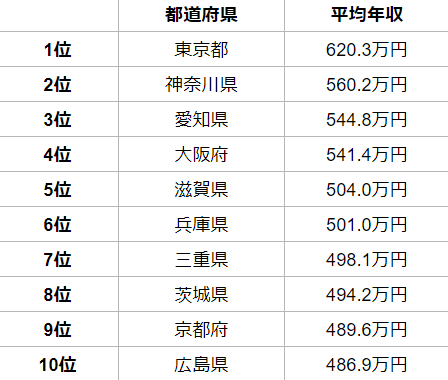 年収は業種や職種によってかなりの差がありますが、基本的に大都市の方が高い傾向にあります。