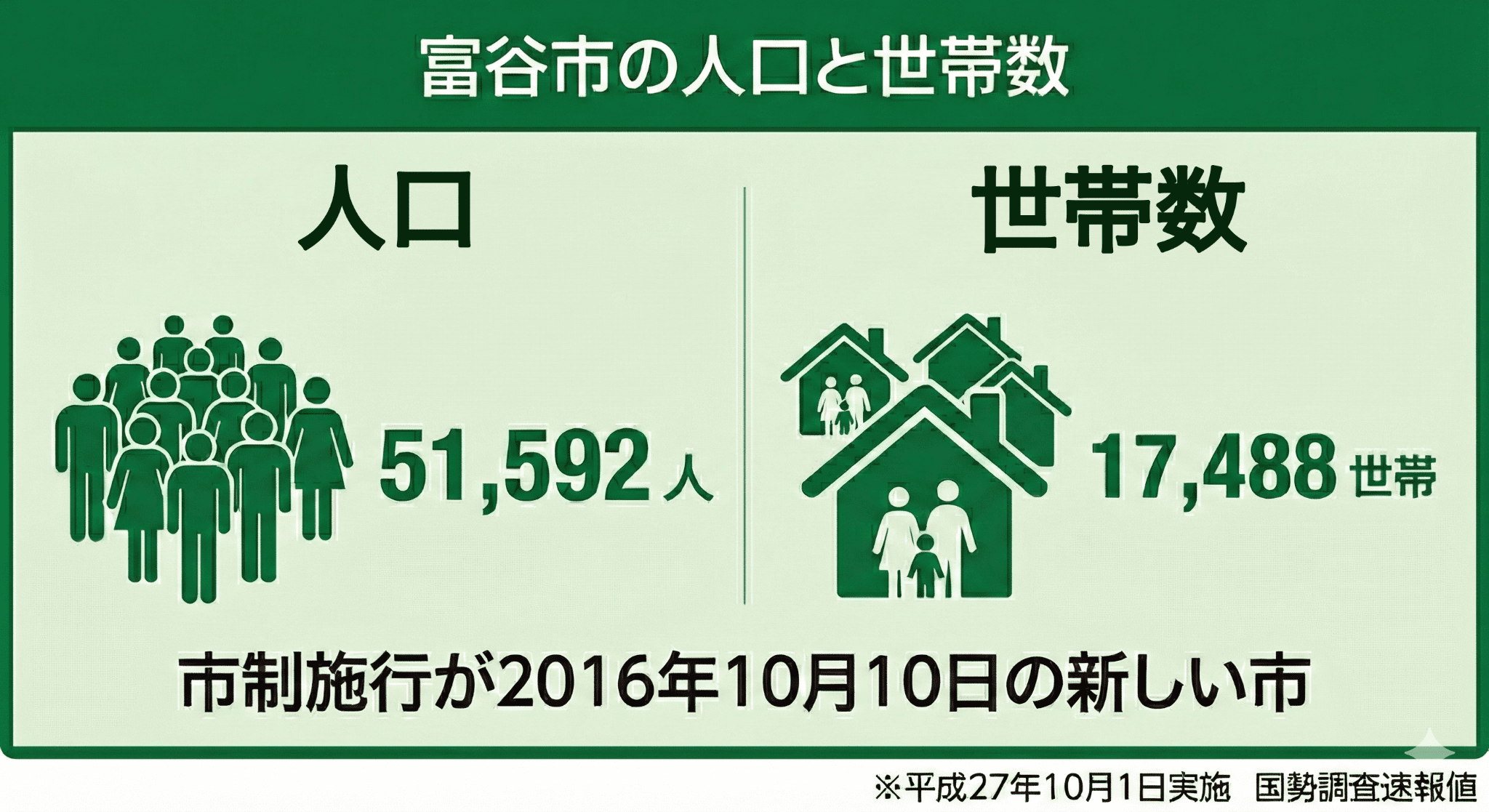 街の規模感は、生活の混み具合や、子育て環境のイメージに直結します。富谷市は市制施行が2016年10月10日で、比較的新しい市です。